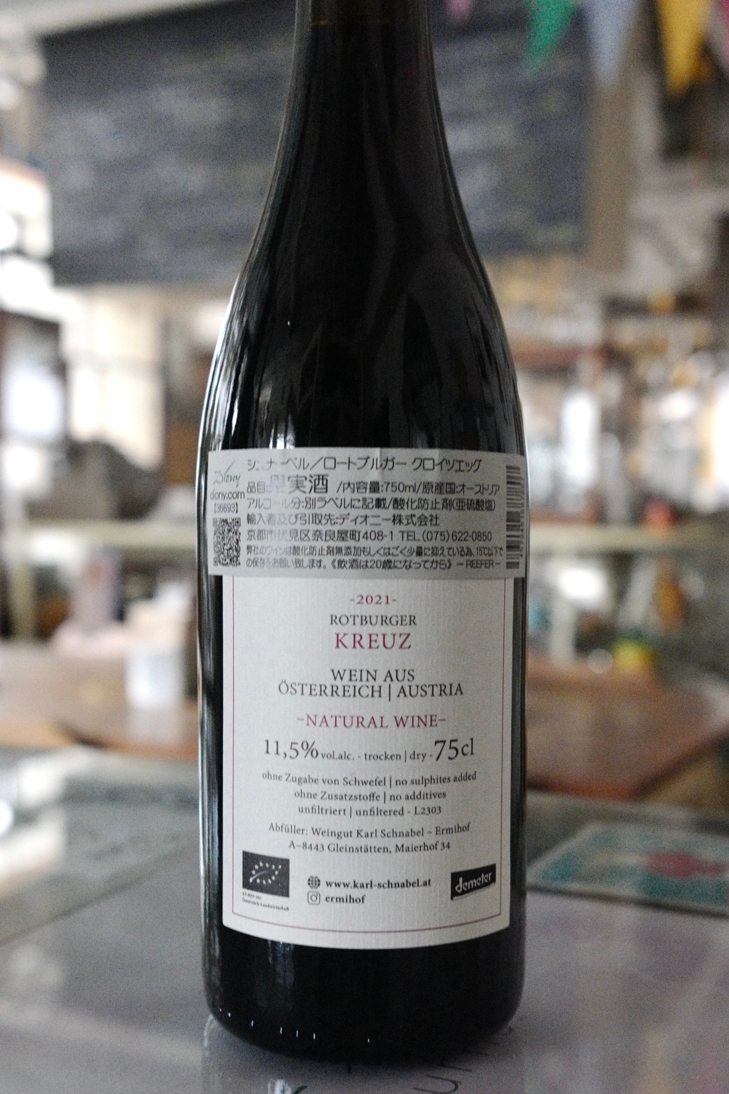 ロートブルガーはツヴァイゲルトの古い呼び名でクロイツエッグは区画名です。ブドウを除梗後、皮や種とともに醸し・発酵後プレス、古樽で熟成しました。紫色がかったガーネットの外観、ラズベリーやカシス、火打石、スミレ、湿った土の香り、綺麗な酸味にベリーの酸が心地よく、細かなタンニン、しっかり密度が詰まった味わいがじわりとアフターに拡がります。