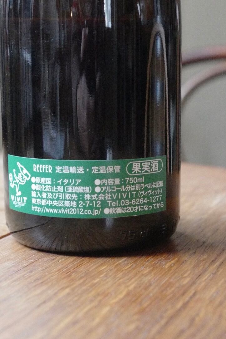 2 品種をブレンドして熟成。無清澄、ノンフィルターで瓶詰め。SO2 は瓶詰め時に必要最