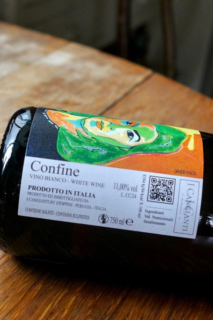 Confine コンフィーネとは『境界』を意味します。ストッピーニ兄弟は、ウンブリア人であり、ほぼ毎日トスカーナとウンブリアの境界を越えて畑に仕事に行っています。またこのワインの色